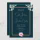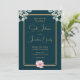 Invite your guests to share in the celebration of your love with this exquisite wedding invitation adorned with eucalyptus leaves at the top and a pink flower at the bottom. Featuring golden lettering and a double golden frame, set against a warm dark green background with hints of blue, this invitation exudes elegance and modern charm. Perfect for any season, this invitation sets the tone for a sophisticated affair that will leave a lasting impression on your guests.