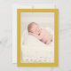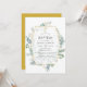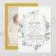 Wild forest woodland eucalyptus herbarium baptism photo invitation with gold geometric frame. A portrait format photo is recommended.