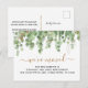 Watercolor Eucalyptus Gold Glitter Foil Moving Announcement Postcard