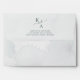 Coordinate and accent your invitations with envelopes featuring beautiful watercolor sage green and dusty blue-green eucalyptus leaves and greenery inside and a soft watercolor wash on the outside. The back flap showcases the couple's monograms and return address. CHANGES: Change the text font style, colour, size and placement for a custom look by clicking on CUSTOMIZE FURTHER at the bottom of the PERSONALIZE section. Contact the designer via Zazzle Chat or makeitaboutyoustore@gmail.com if you'd like this design modified or on another product.