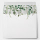 a lovely white envelope with watercolor eucalyptus foliage drop. The purple colour on this envelope can be personalised.
