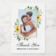 Modern Watercolor Eucalyptus Greenery Sunflowers Frame Photo Wedding Thank You Mini Wine Bottle Label - Gold Frame