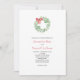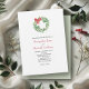 Personalised Christmas wedding invitation. This design features a festive watercolor eucalyptus greenery wreath with a red bow. Your holiday party details and names are set is a trendy hand lettered script and traditional san typography on a crisp white background. The card reverses to a solid complimentary green background. The perfect invitation for your winter weddings or customise for a holiday party. To see matching envelopes and designs visit VG Invites on Zazzle