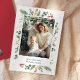 A perfect card for the holidays, featuring your favourite photo and custom text on a white background with watercolor evergreens and berries. Enter your custom text on the template form. Use the "customise further" option to change the font and background colours, or to add photos and text to the back of your card.