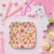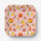This is a fun fall square paper plate with gnomes, pumpkins and leaves in fall colours on a light pink background. Great for Thanksgiving or any other party you will be having in the fall season.