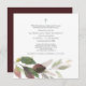 Celebrate a meaningful milestone with these twins baptism invitations that also double as baptism and first birthday invitations. Designed in a unique square format, this card frames your event details with a border of watercolor botanical greenery in rustic fall shades of marsala, burgundy, and green leaves botanical greenery plants on a crisp white background.