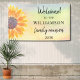 Welcome your family to their family reunion with this colourful welcome banner. It features a yellow sunflower on a watercolor background.