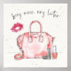 This watercolor print features a cute purse, lips and makeup | By Anne Tavoletti