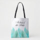An attractive tote bag or the Mother of the Bride or other member of the bridal party. This design features watercolor feathers in various shades of aqua. You can edit the text shown with other text. To change fonts or move the text around, select the "customise it" button. You can also remove the text entirely if you prefer the tote without text.