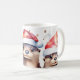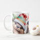 Celebrate the holiday season with this charming mug featuring three adorable otters dressed in festive attire, adding a touch of holiday cheer. Set against a wintery backdrop with decorated Christmas trees and wrapped presents, this delightful illustration captures the joy and warmth of Christmas. Perfect for animal lovers, this mug makes a wonderful gift or a festive addition to your own collection.