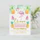 This cute tropical watercolor 11th birthday invitation features a pink flamingo and some fruit. The design also includes some faux gold dots and a watercolor paper background image. The back of the invitation is a hot pink watercolor diagonal striped pattern on a watercolor paper image. This is a fun colourful invitation sure to set the scene for your little girl's tropical theme 11th birthday party. For more designs in this theme please visit the store. This tropical flamingo watercolor 11th birthday party invitation is ready to be personalised.