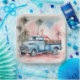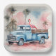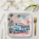 Watercolor Flamingo In Retro Blue Truck Paper Plate