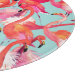 Birds | Watercolor flamingos crowded together on pastel teal background. © and ® Bigstock® - All Rights Reserved.