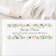 A beautiful return address label with watercolor white, pink, blue, purple and green flowers and foliage. The text is in grey. So pretty!