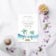 Invite family and friends with this gold foil pressed wedding invitation. It features watercolor illustrations of a beachfront view with palm trees and a wedding arbor. Personalise this minimalist wedding invitation by adding your wedding details. You can further personalise the back by changing the back image to a photo or any other image. This gold foil wedding invitation is available in other foil finishes.