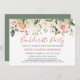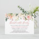 Chic floral Bachelorette party invitation features watercolor roses and hydrangea in full bloom in a soft pastel cream, apricot and pink colours with greenery foliage. Invitations reverse - grayish green colour.