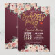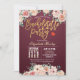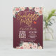 Bachelorette Party Invitation Card Template - Elegant Gold Bachelorette Party Lettering with Vintage Watercolor Floral Burgundy Red Background.