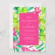 This modern botanical invitation features a colourful tropical watercolor background of hot pink and lime green flowers and foliage. Personalise it with the names of the bride and groom and other wedding details in white on a bold pink rectangle. The reverse side is a matching shade of pink. Ideal for a tropical themed spring or summer wedding!