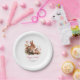 This collection of Easter invitations features whimsical watercolor Easter bunnies surrounded by elegant spring flowers.