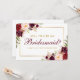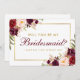 Watercolor Floral Burgundy Marsala Gold Wedding Will You Be My Bridesmaid Card - Burgundy Script