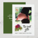 Hand painted green and red floral Christmas pregnancy announcement photo card customisable to your specifics. A square instagram photo is ideal.