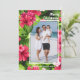 Watercolor leaves and tropical Hawaiian flowers accent your favourite photo with your names and greeting in chic lettering. Use ANY COLOR for the background on the front and back. **ADD more photos or details on the back. ***HORIZONTAL layout one for you in our store. Select Matte for heaviest paper and high definition for best print quality.