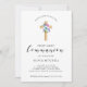 Watercolor Floral Cross Kraft Look First Communion Invitation