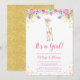 Watercolor Floral Deer Girl Baby Shower Invitation