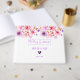 Modern and cute watercolor pink and purple flowers with leaves and polka dots and the purple heart in the middle