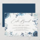 Shades of blue watercolor botanical flowers and garden greenery frame, Easter Brunch invitation. Back of card features coordinating solid blue colour.
