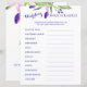 Wedding word scramble funny bridal shower game personalised with your name and date (on the backside) featuring purple plum pink and navy botanical watercolor tropical floral bouquets.