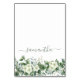 The design features watercolor white floral with eucalyptus greenery artwork on the bottom border.