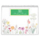 Watercolor calendar. Pinks, peach, pale blue and green on a white background. Family Name and Year. Each month has a photo replacement.