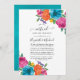 Watercolor floral fiesta online long distance virtual wedding invitation with turquoise watercolor wash reverse.