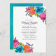 Watercolor floral fiesta long distance virtual baby or bridal shower invitation with turquoise watercolor wash reverse.