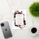 Modern Elegant Watercolor Mixed Floral Wedding Invitation includes burgundy roses, pink roses, red flowers, blue flowers, eucalyptus leaves and botanical greenery. Gold Foil Frame. Navy Blue Back.
