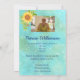 An elegant watercolor Floral Flower Notice of death and Funeral announcement card. Use the card to advise family and friends of the bereavement and the funeral arrangements. Rustic yellow floral watercolor sunflowers on a blue watercolor background . Add a photo on the reverse and amend all text with your own details as needed . Sorry for your loss.