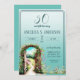 Watercolor light Teal 50th Birthday floral Invitation.
