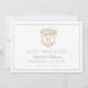 Invite your guests to an evening in the garden with this gorgeous watercolor floral wedding crest save the dates. Every insert is more deliciously colourful than the next. With pops of blue, peach, pink, green, and cream, every elegant and whimsical detail of your day is delightfully coordinated. To see more work and learn about this artist, visit her at www.theprintsprincess.com or www.instagram.com/theprintsprincess