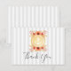Nautical anchor wedding thank you card design featuring gold and stripes pattern background with watercolor floral details.