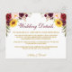 Elegant Watercolor Floral Wedding Details Insert Card includes burgundy marsala roses, pink roses, red roses, sunflowers and botanical greenery. Gold Script.
