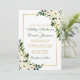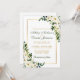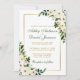 Watercolor Floral Botanical Green and White with Gold Frame Wedding Invitation with Gold and Green Text, Photo Back