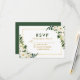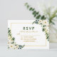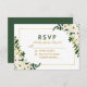 Watercolor Floral Green White Wedding RSVP Card - Gold Frame - Green Back