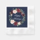 Watercolor Floral Happy Holidays Blue Cocktail Napkin