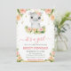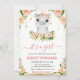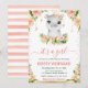 Watercolor Floral Hippo Girl Baby Shower Invitation