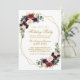 Elegant Watercolor Burgundy Marsala Floral Holiday Party Invitation. Includes beautiful roses and botanical greenery. Gold Script. Geometric Frame.