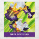 Beautiful original art painting of colourful purple yellow and green iris flower art. Bright vibrant colours. Watercolor fine art.
