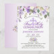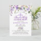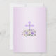 Simply elegant floral rustic bouquet design in watercolor (watercolour) green greenery, lavender, purple, violet, lilac, blush pink, peach, white flower roses / peony on white background and black letters. Delicate First Holy Communion invitations for girl. Cross with faux diamond in middle.