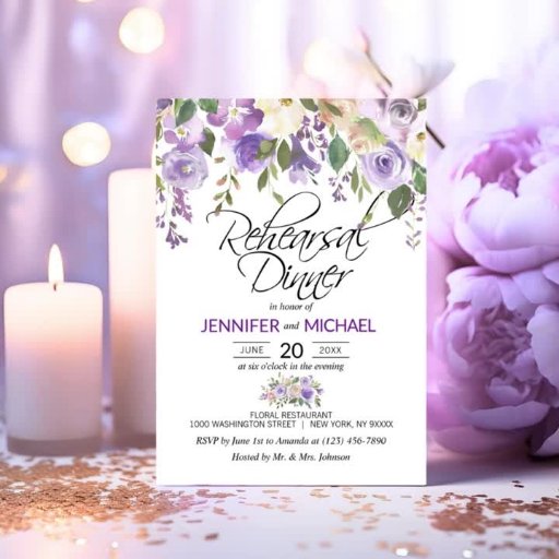 Watercolor Floral Lavender Purple Lilac Wedding Invitation
