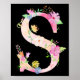 Watercolor Floral Letter S Poster by the watercolor artist Cheng Jing. The Letter S background is pink with watercolor flowers and decorative leaves and berries. It is perfect for Nursery art, Teen room decor and girly gift. Background black. The background colour can be personalised.